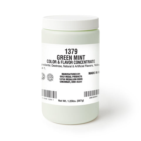 Green Mint Flavoring #1379 delivers a refreshing, smooth minty taste that's perfectly balanced for consistent results every time. Use it for flavoring gourmet popcorn, fudge, funnel cakes, waffles, and more. (1.25-lb jar)